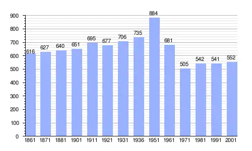 | Gráfica de evolución demográfica de Salisano entre 1861 y 2001 |