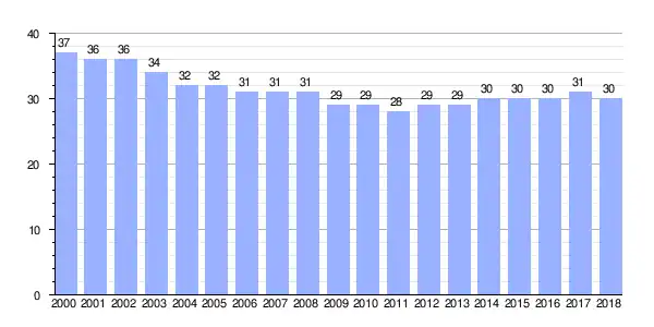 | Gráfica de evolución demográfica de Salmonte entre 2000 y 2018 |