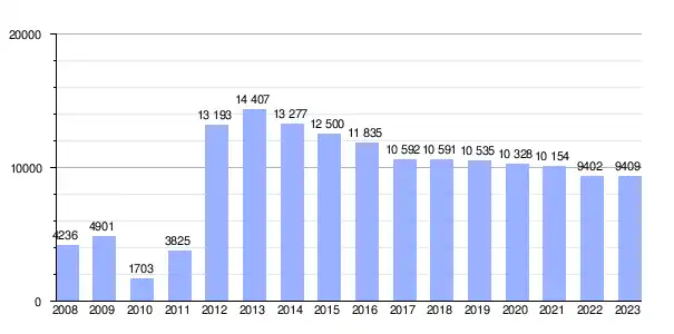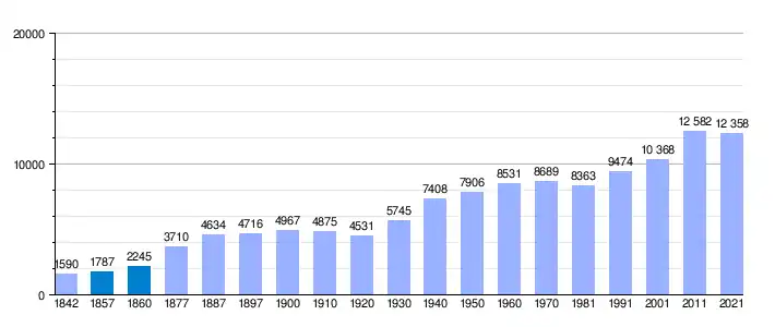 Gráfica de evolución demográfica de Salobreña[14]​ entre 1842 y 2021