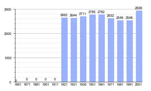| Gráfica de evolución demográfica de Salorno entre 1861 y 2001 |