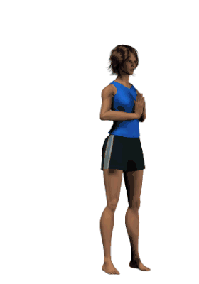 Se comienza de pie, con los pies juntos, el rostro mirando al este y las manos unidas en el centro del pecho, en actitud de respeto hacia el Sol, mientras se realiza una profunda espiración.
