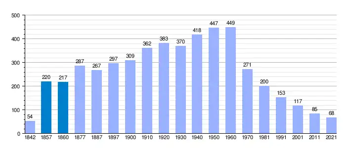 | Gráfica de evolución demográfica de Salvadiós[3] entre 1842 y 2021 |