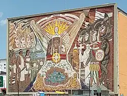 - Las apariciones guadalupanas y alegóricas técnica mixta 412m² iglesia de nuestra señora del sagrado corazón colonia Narvarte (CDMX) (1960).