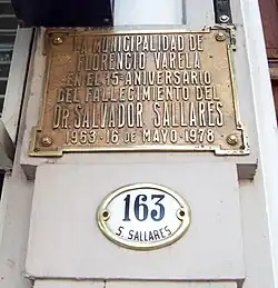 - ↑ a b c «Ofensa a la memoria del Dr. Sallarés Archivado el 28 de septiembre de 2009 en Wayback Machine.» Varela en la Red. Consultado el 25 de febrero de 2011.