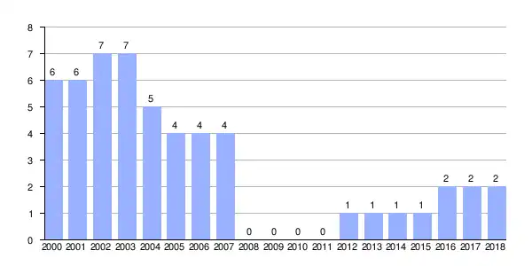 | Gráfica de evolución demográfica de Salvande entre 2000 y 2018 |