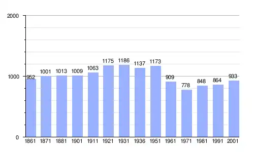 | Gráfica de evolución demográfica de Salvirola entre 1861 y 2001 |