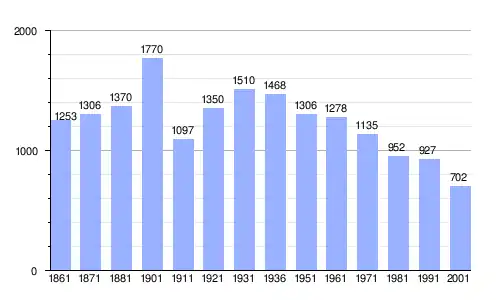 | Gráfica de evolución demográfica de Salvitelle entre 1861 y 2001 |