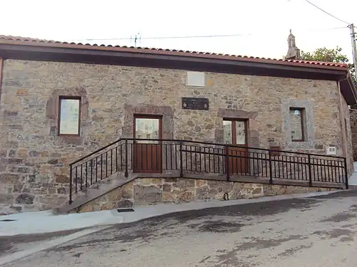 El impresionante busto de Adolfo Prieto, obra de Víctor Hevia Granda, se encuentra frente a la fachada. Este edificio tiene además otros usos (museo etnográfico, centro de reunión vecinal, etc.)