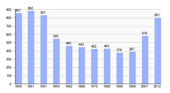 | Gráfica de evolución demográfica de Sames (Pirineos Atlánticos) entre 1800 y 2012 |