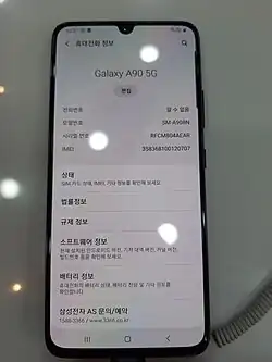 El Galaxy A90 5G es el primer teléfono inteligente de gama media (no insignia) de Samsung que cuenta con conectividad de red 5G, con un precio inicial de 900,000 won coreanos (US $ 750).[5][6]