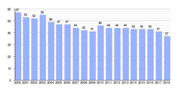 | Gráfica de evolución demográfica de Sanín entre 2000 y 2018 |