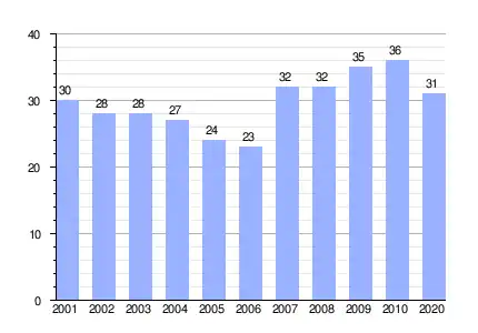 Población de derecho (2001-2010) según los censos de población del INE a 1 de enero de cada año.[2] |