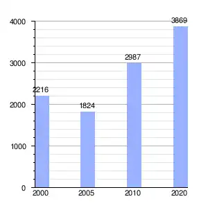Cuenta con 3869 habitantes lo que representa un incremento promedio de 2.7% anual en el período 2010-2020 sobre la base de los 2987 habitantes registrados en el censo anterior. Ocupa una superficie de 0.3549 km², lo que determina al año 2020 una densidad de 10 900 hab/km².[5]