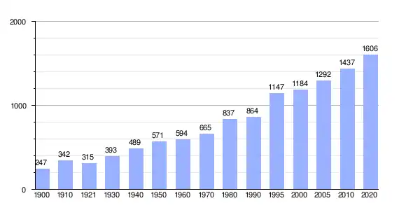 En 2020 registró una población de 1606 personas, lo que corresponde al 1.40 % de la población municipal.[7] De los cuales 776 son hombres y 830 son mujeres.[7]