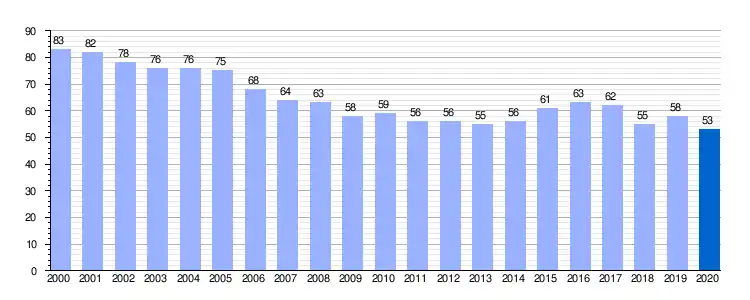 | Gráfica de evolución demográfica de San Andrés de la Regla entre 2000 y 2020 |