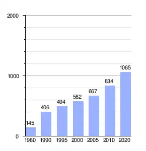 | Gráfica de evolución demográfica de San Antonio entre 1980 y 2020 |