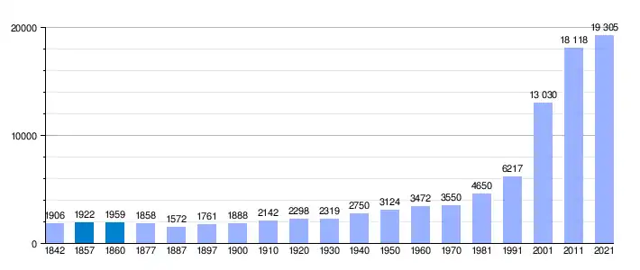 | Gráfica de evolución demográfica de San Bartolomé[8] entre 1842 y 2021 |
