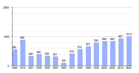 En 2020 registró una población de 1014 personas, lo que corresponde al 1.80 % de la población municipal;[1][7] de los cuales 496 son hombres y 518 son mujeres.[1][7]