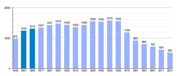 | Gráfica de evolución demográfica de San Bartolomé de Pinares[5] entre 1842 y 2021 |