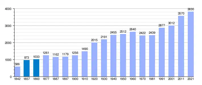 | Gráfica de evolución demográfica de San Bartolomé de la Torre[5] entre 1842 y 2021 |