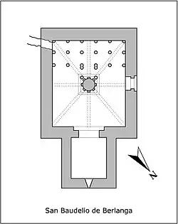 La ermita de San Baudelio de Berlanga es un templo de estilo mozárabe situado en Casillas de Berlanga, en la provincia de Soria, España. Construida a finales del siglo XI, destaca por su singular arquitectura y por las pinturas murales que decoran su interior. Es considerada un ejemplo excepcional del arte mozárabe, tanto por su diseño como por su contenido artístico, lo que le ha valido el apodo de la "Capilla Sixtina del arte mozárabe".[1][2]