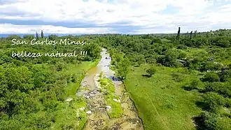 San Carlos Minas es una localidad y municipio del noroeste de la provincia de Córdoba, Argentina, cabecera y localidad más poblada del departamento Minas. Se encuentra a 230 km de la capital provincial Córdoba, con la que se comunica a través de la Ruta Provincial 15 y a 930 km de Capital Federal (Argentina). Se sitúa en la región del este del departamento Minas a orillas del Arroyo Noguinet.[1][2] Es una de las cabeceras menos poblada de la Provincia de Córdoba. Aunque actualmente es una localidad de baja población, y de bajos recursos económicos, en el Siglo XIX fue un centro de producción de minerales como plata y de carne vacuna y granos para la producción de harina por ejemplo. En los últimos años, se ha intentado generar microempredimientos relacionados con las actividades ganaderas, agropecuarias y apícolas pero su éxito ha sido relativo debido al poco compromiso que presentan los gobiernos, ya que no proveen de capacitación y herramientas adecuadas para preparar a los emprendedores. En la actualidad, San Carlos Minas constituye un importante centro turístico de Traslasierra. Está contenida entre montañas, por ese motivo presenta un microclima especial, donde se presenta una temporada de verano calurosa con temperaturas altas, mayores a 38° inclusive, donde se pueden presentar fuertes tormentas eléctricas y abundante caída de granizo. En el invierno es común temperaturas muy bajas a veces inferiores a 0°, pero con prácticamente precipitaciones nulas, y en caso de lluvia se puede presentar con agua congelada que no llega a formar nieve. En su historia reciente es reconocida porque un alud arrasó con el pueblo en el año 1992, fue un acontecimiento trágico y que tuvo alcance nacional por la devastación que se produjo y la gran cantidad de muertos, aproximadamente 30 para una población de 800 habitantes. En las décadas pasadas ha tenido una gran emigración de su población hacia la ciudad de Córdoba (Argentina), debido principalmente a los pocos puestos de trabajo disponibles. Es una de las cabeceras departamental más pobre del noroeste, nunca se logró dar solución al problema la escasez de fuentes de trabajo, aún en el año 2025. Aunque no existen estadísticas oficiales, el 80% de los empleados con relación de dependencia trabajan para un repartimiento estatal ya sea municipal, provincial o nacional.