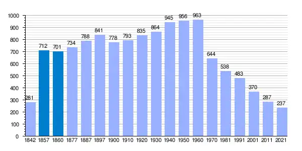 | Gráfica de evolución demográfica de San Cebrián de Castro[6] entre 1842 y 2021 |