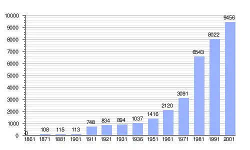 | Gráfica de evolución demográfica de San Cesareo entre 1861 y 2001 |