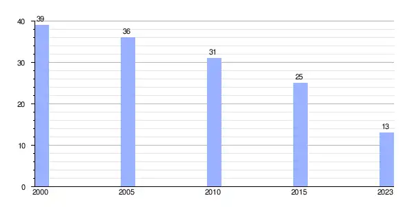 Gráfica de evolución demográfica de Rubiais (lugar) entre 2000 y 2023