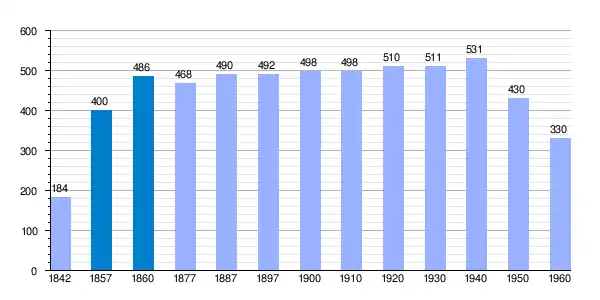 | Gráfica de evolución demográfica de San Ciprián[7] entre 1842 y 1960 |