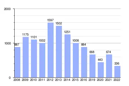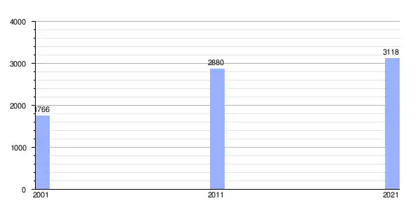 | Gráfica de evolución demográfica de San Cristóbal de Segovia[17] entre 2001 y 2021 |