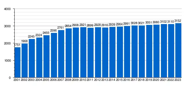 | Gráfica de evolución demográfica de San Cristóbal de Segovia[19] entre 2001 y 2023 |