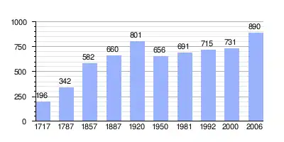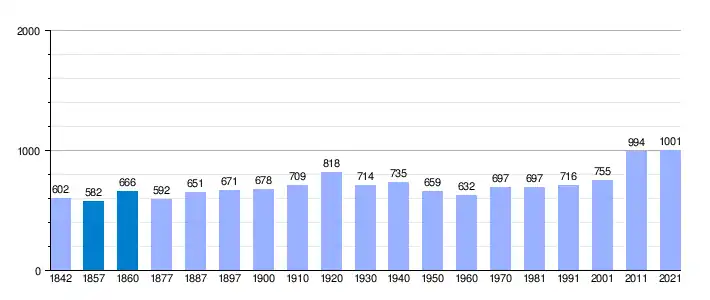 | Gráfica de evolución demográfica de San Cugat Sasgarrigas[3] entre 1842 y 2021 |