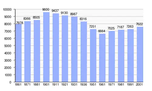 | Gráfica de evolución demográfica de San Damiano d'Asti entre 1861 y 2001 |