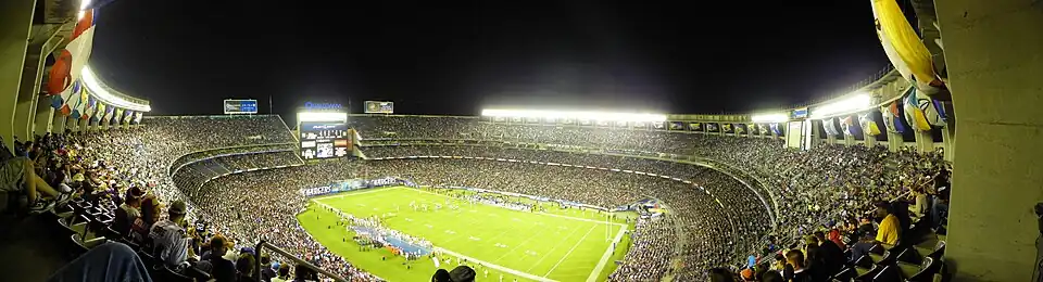 - ↑ «Qualcomm Stadium». stadiumdb.com.