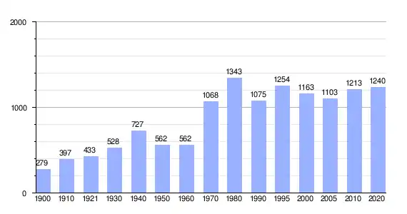 | Gráfica de evolución demográfica de San Dionisio entre 1900 y 2020 |