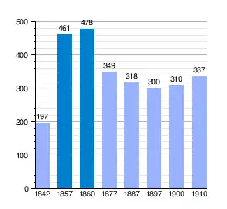 | Gráfica de evolución demográfica de San Esteban de Mall[2] entre 1842 y 1910 |