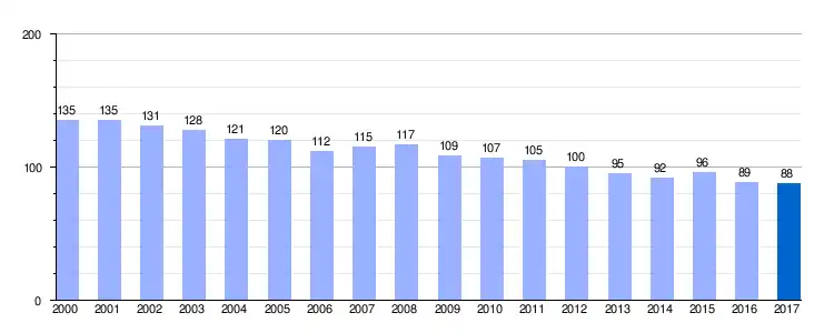 | Gráfica de evolución demográfica de San Félix de la Vega entre 2000 y 2017 |