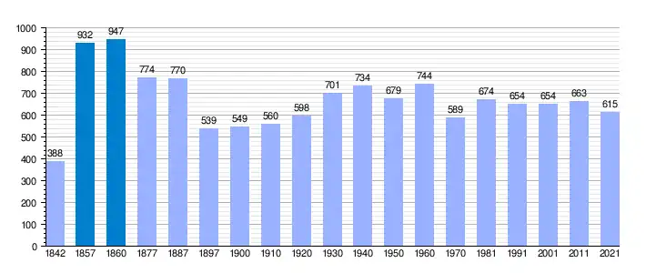 | Gráfica de evolución demográfica de San Felíu Saserra[5] entre 1842 y 2021 |