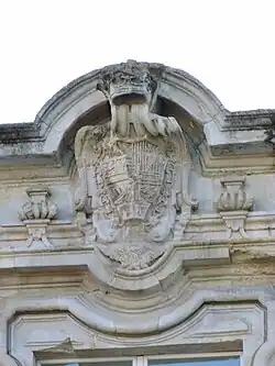 «De sinople, un palacio de oro, mazonado de sable y aclarado de gules, surmontado de corona real cerrada y en la punta el anagrama F. VI (Fernando VI) de oro.»