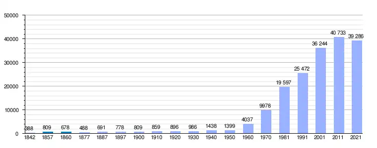 Gráfica de evolución demográfica de San Fernando de Henares[16] entre 1842 y 2021