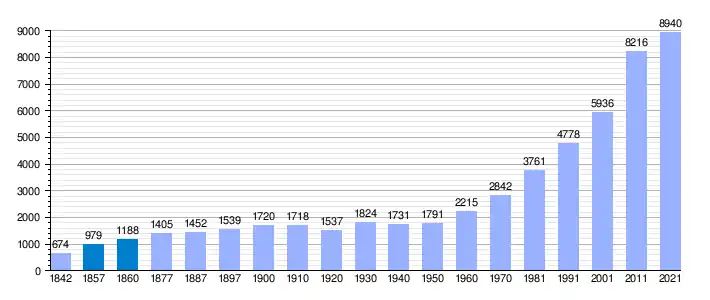 Gráfica de evolución demográfica de San Fructuoso de Bages[5]​ entre 1842 y 2021