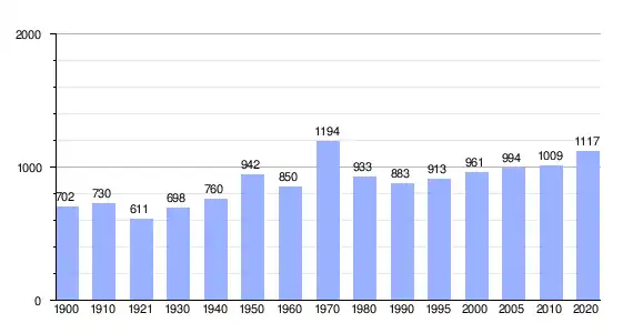En 2020 registró una población de 1117 personas, lo que corresponde al 1.93 % de la población municipal.[7] De los cuales 532 son hombres y 585 son mujeres.[7]