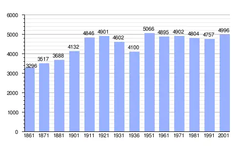 | Gráfica de evolución demográfica de San Giovanni Bianco entre 1861 y 2001 |