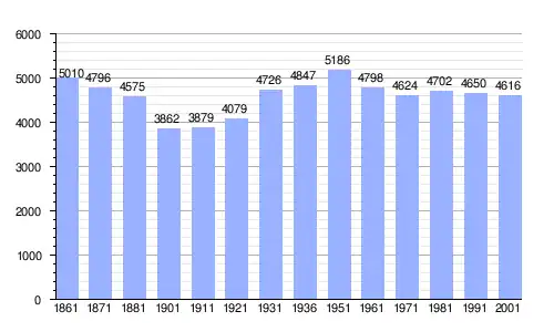 | Gráfica de evolución demográfica de San Gregorio Magno entre 1861 y 2001 |