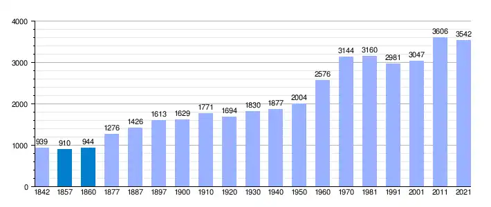 | Gráfica de evolución demográfica de San Hipólito de Voltregá[5] entre 1842 y 2021 |