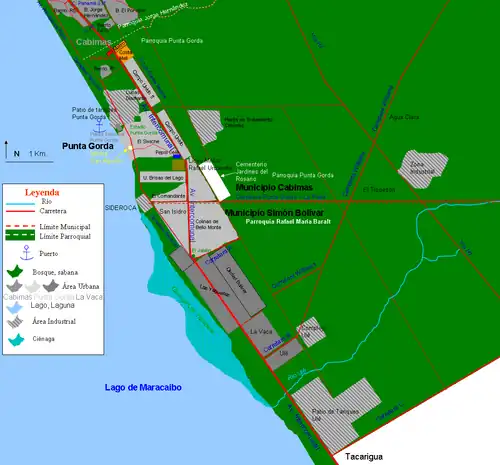 San Isidro está unido a Punta Gorda, sin embargo pertenece a otro municipio y tiene identidad propia. San Isidro no tiene muelles o instalaciones petroleras, se encuentra parcialmente separado de La Vaca, sin embargo las casas, haciendas e industrias se suceden sin interrupción entre los 2 pueblos.