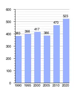 | Gráfica de evolución demográfica de San Isidro el Astillero entre 1990 y 2020 |