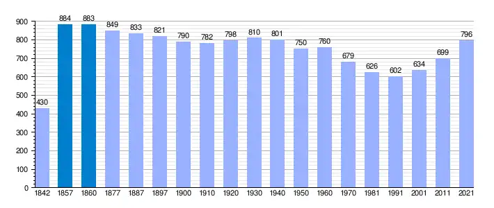 Población de derecho según los censos de población del INE Población de hecho según los censos de población del INEEntre el censo de 1857 y el anterior, crece el término del municipio porque incorpora a Subiranegas[8] |