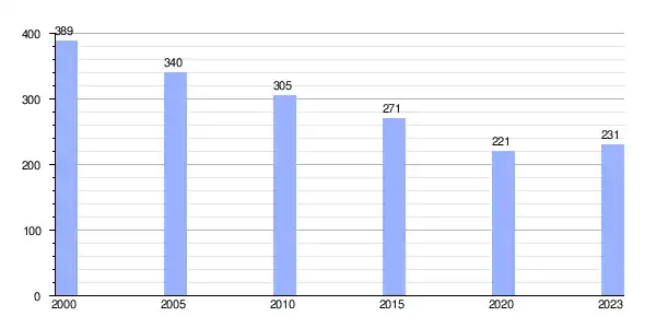 | Gráfica de evolución demográfica de Lorenzana entre 2000 y 2023 |
